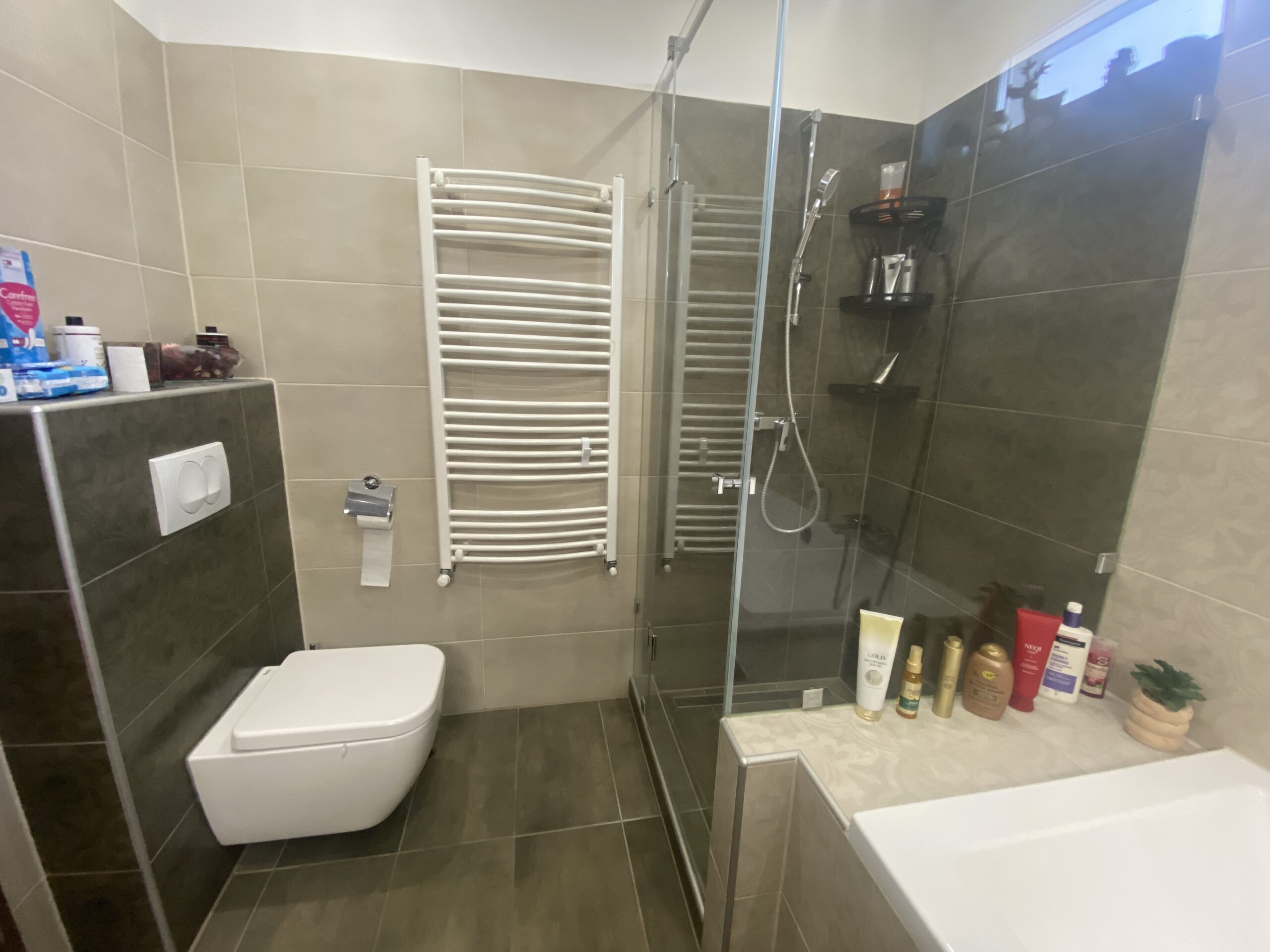 A fürdőszobában fürdőkád és zuhanyzó is rendelkezésre áll