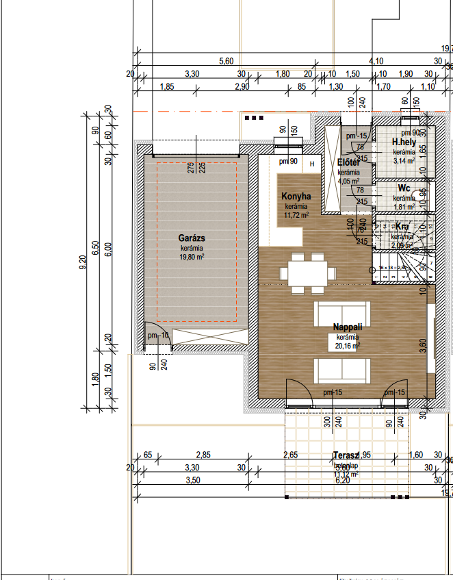 Az építész alaprajz szerinti méretek „nyers” méretek, vakolatlan falak közötti távolságot jelentik.