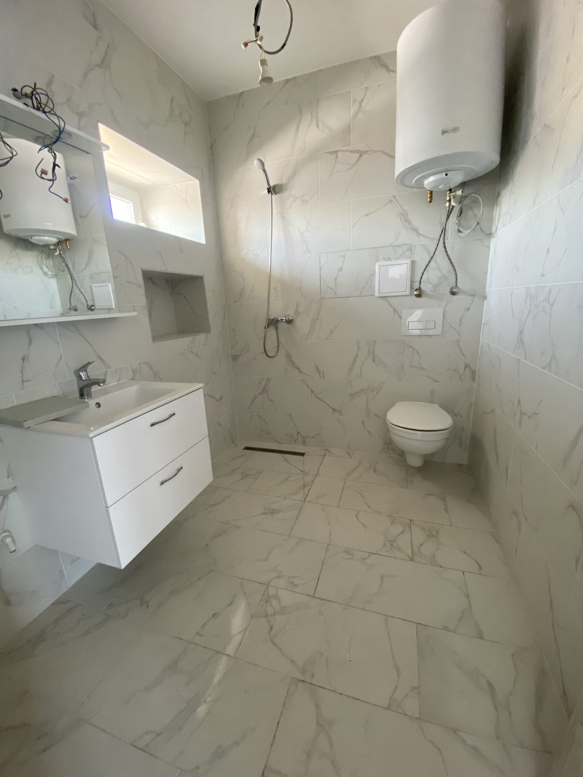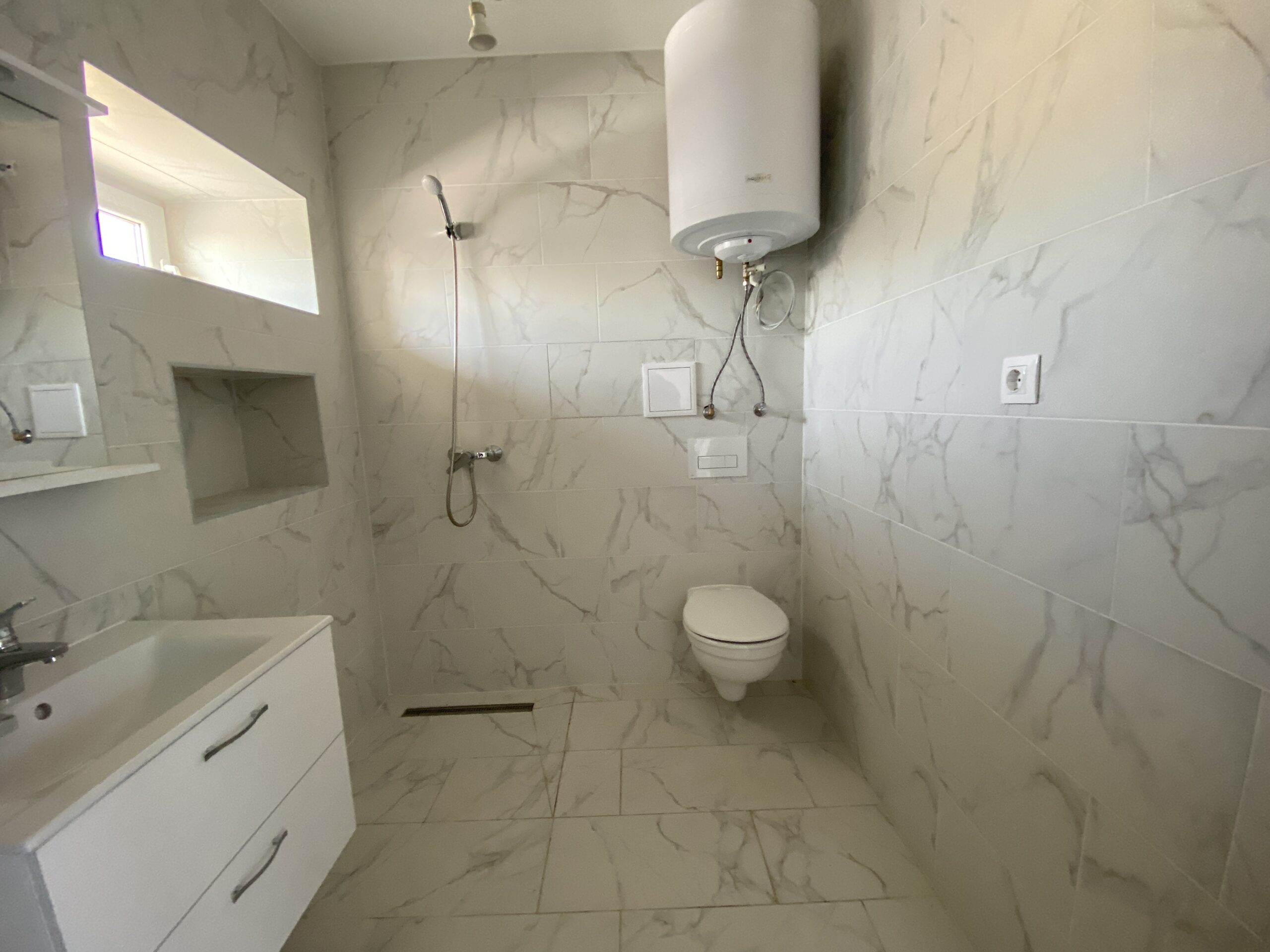 Fürdőszoba is teljesen felújított, a meleg víz ellátás egy 40 literes bojlerről megoldott
